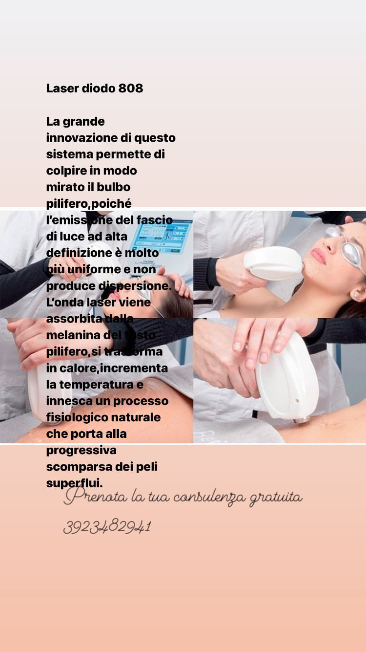 Il laser a diodo 808 è la chiave per una depilazione duratura e indolore, adatto a tutti i tipi di pelle. Presso questo centro estetico con laser a diodo 808 a Pompei, ci impegniamo a fornire risultati visibili e duraturi, garantendo la vostra soddisfazione. Affidatevi a noi per un'esperienza di bellezza unica nel nostro centro estetico con laser a diodo 808 a Pompei. Siamo qui per valorizzare la vostra bellezza naturale e farvi sentire sicuri di voi stessi. Prenotate oggi il vostro trattamento e scoprite i vantaggi della depilazione con laser a diodo 808 nel contesto accogliente e professionale del Centro Estetico Sunrise.